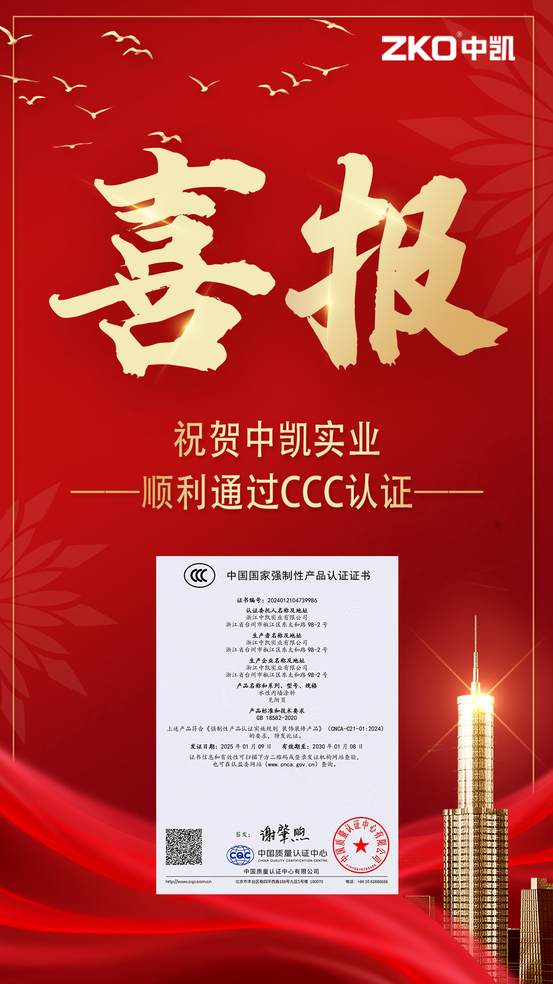 公司成立于1995年,占地面積10000㎡,建筑面積9000㎡,擁有工程師,技術員等職工120人。公司擁有精良的生產(chǎn)設備,完整的管理體系和先進的檢測設備,經(jīng)過多年的市場調(diào)研和產(chǎn)品開發(fā),薈萃了許多科研精英,解決了以往涂料中存在的一些長期沒有獲得解決的缺陷,成為建筑涂料領域的佼佼者,并成為國內(nèi)具有一定規(guī)模和信譽的涂料生產(chǎn)企業(yè)。主要產(chǎn)品“中凱”牌高、中檔內(nèi)外墻厚質(zhì)十大系列近百個品種的建筑涂料,建筑水性反射隔熱保溫涂料和建筑外墻外保溫隔熱防火材料三個體系。